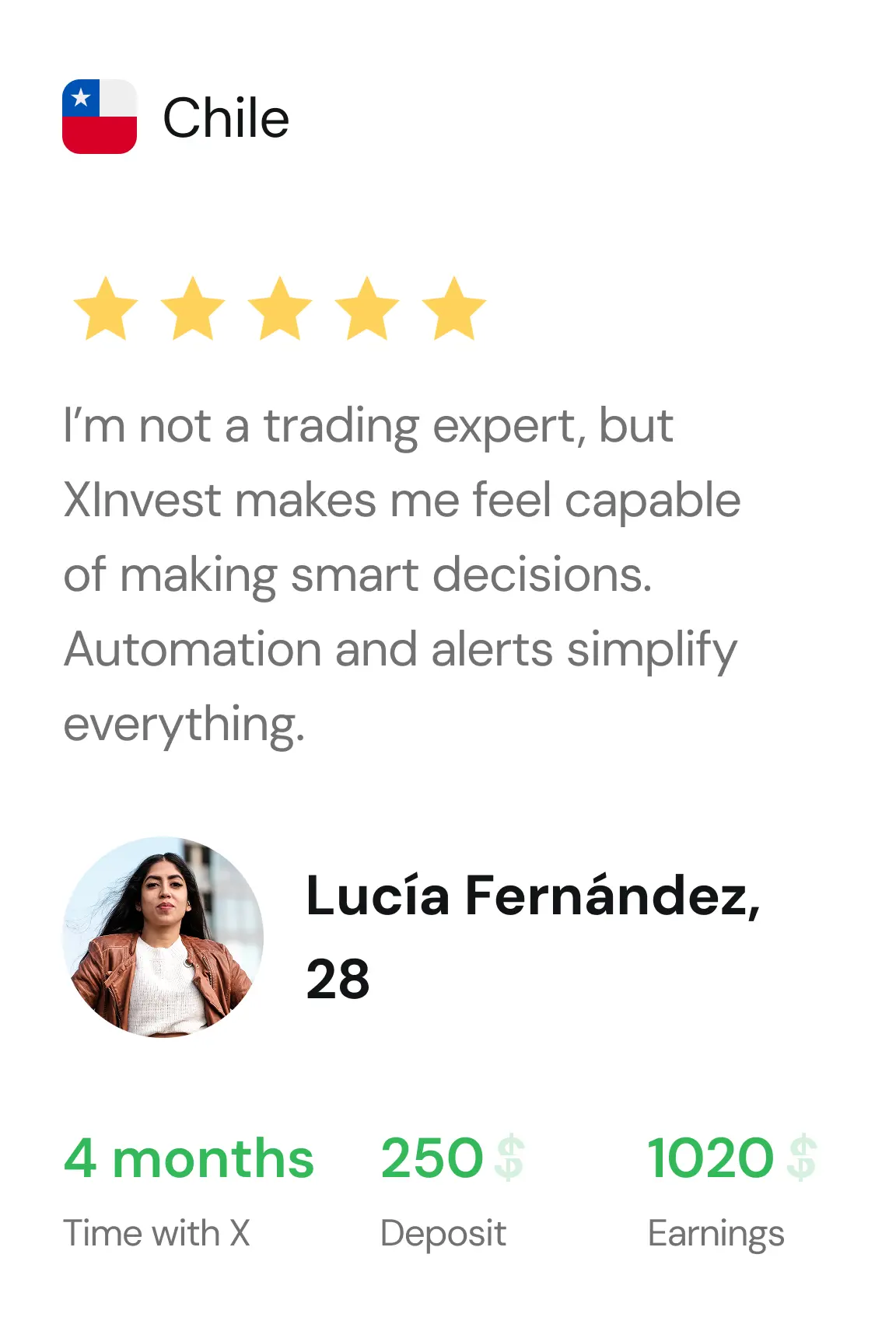 "Con XInvest, no tengo que pensar demasiado. ¡Los resultados llegan por sí mismos!"