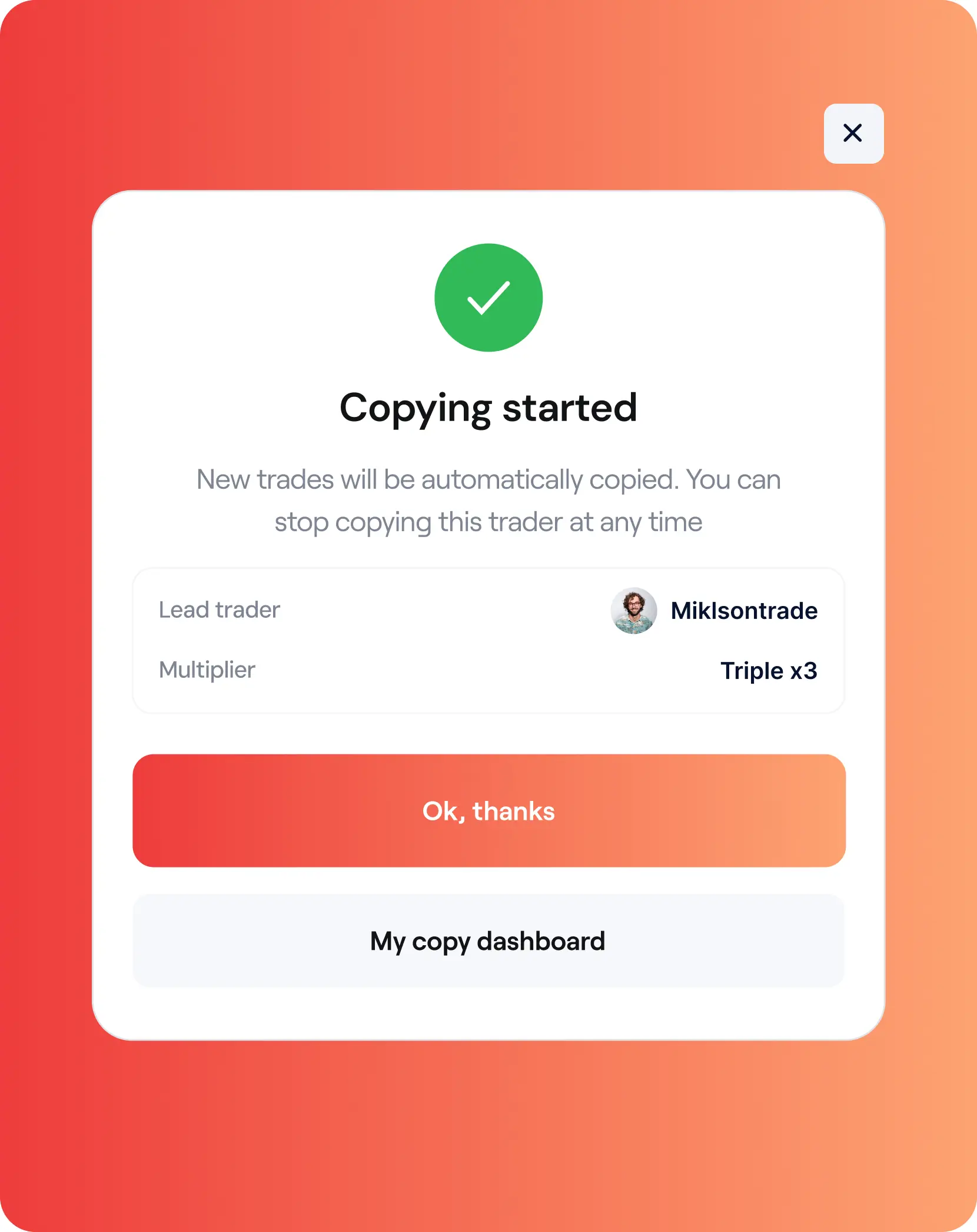 El copytrading te permite replicar automáticamente las operaciones de traders profesionales. Una vez conectada tu cuenta, cada operación que realizan se refleja en tu portafolio, ayudándote a invertir inteligentemente..